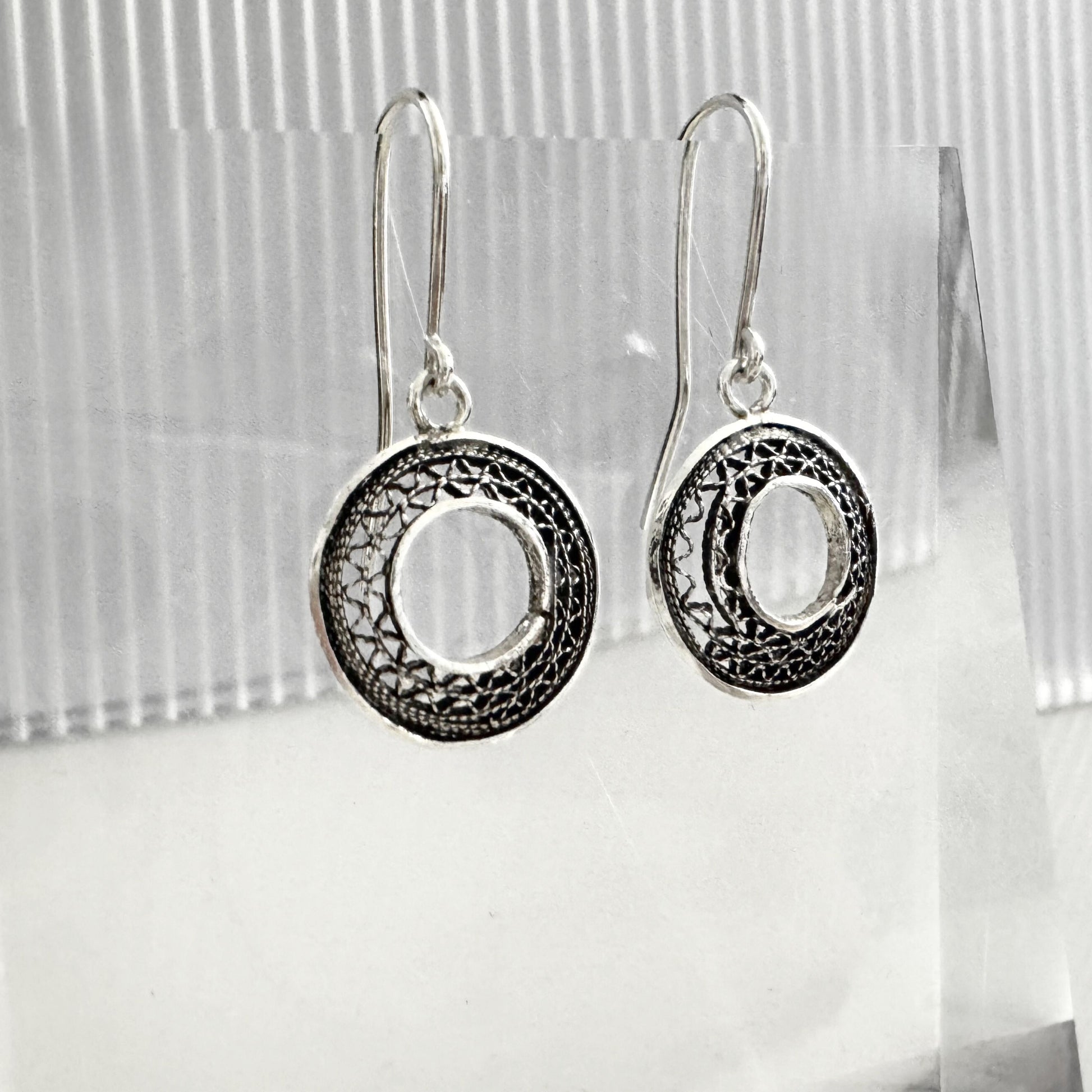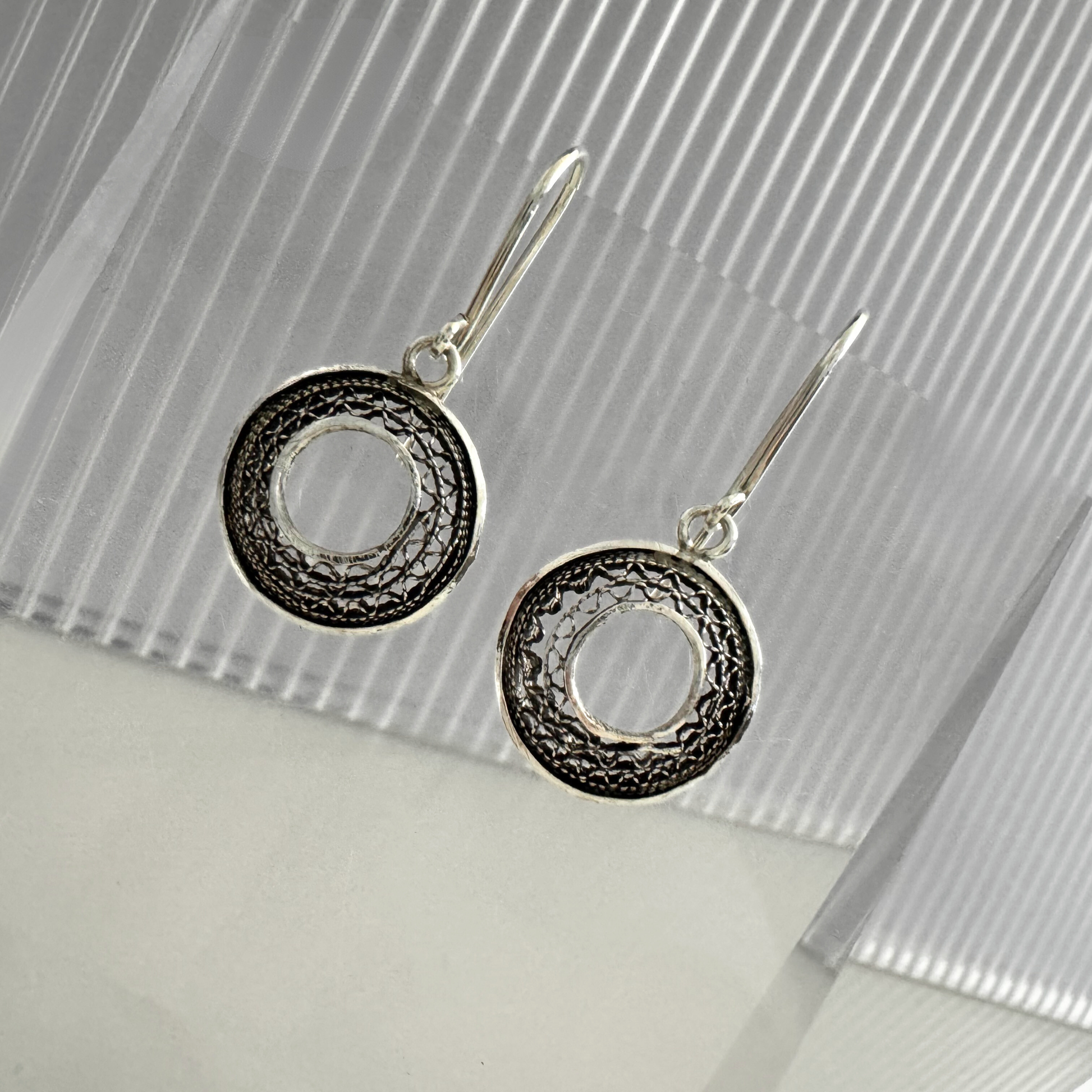 Handcrafted in sterling silver by skilled Macedonian artisans, the Velika Filigree Earrings bring modern precision to the traditional filigree technique. The open circular silhouette feels refined and airy, catching light with subtle radiance.