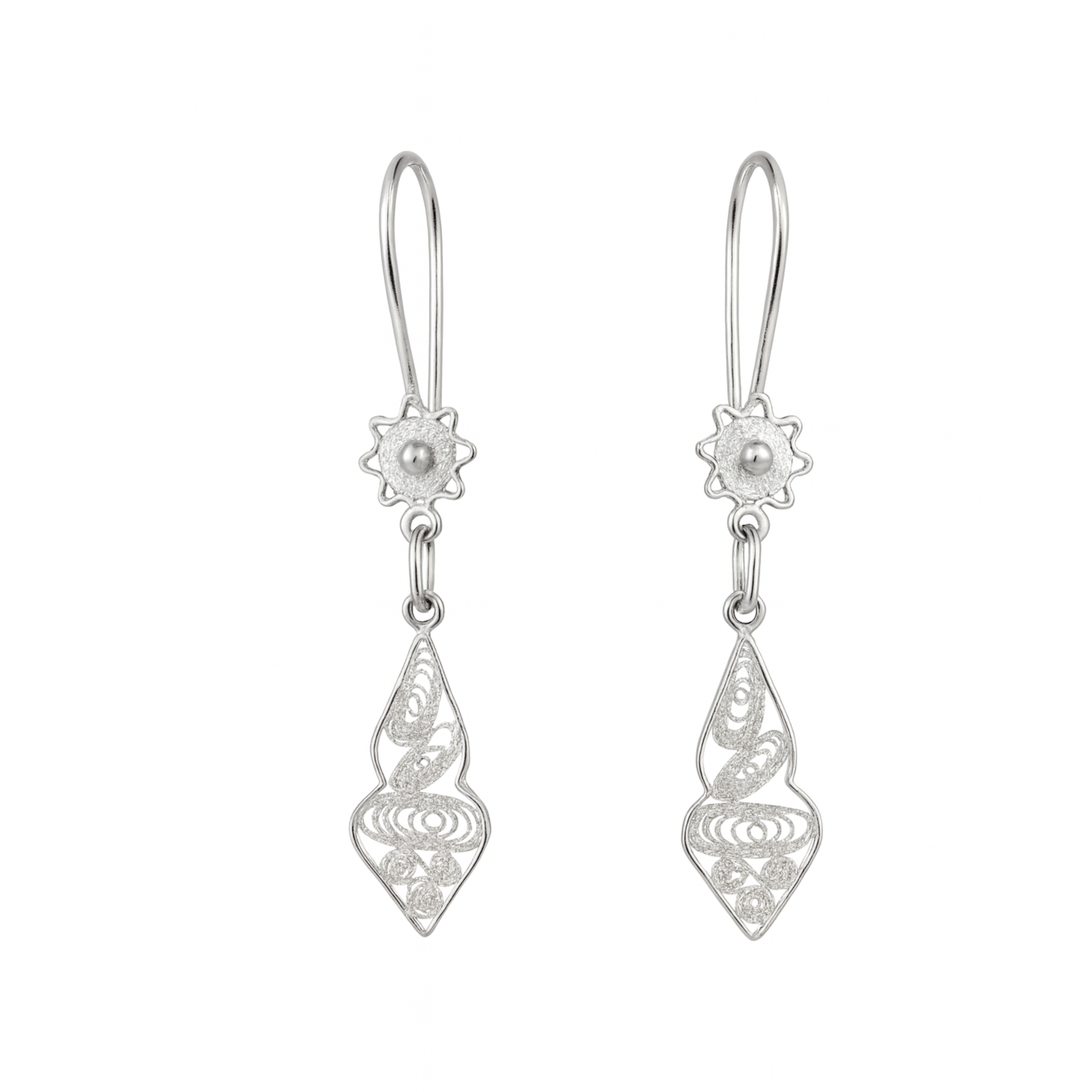 Handcrafted in sterling silver by skilled Macedonian artisans, the Zvezda Filigree Earrings bring refined clarity to a traditional technique. The design features a polished star element leading into an elongated open-work drop, shaped with meticulous filigree detailing.